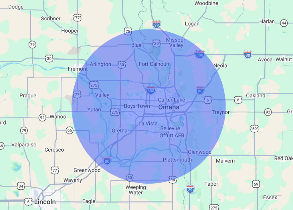 - Cities & Villages: Arlington, Ashland, Bellevue, Bennington, Blair, Boys Town, Carter Lake, Cedar Creek, Council Bluffs, Crescent, Fort Calhoun, Glenwood, Gretna, La Vista, Louisville, Malvern, McClelland, Missouri Valley, Omaha, Papillion, Plattsmouth, Ralston, Springfield, Treynor, Underwood, Valley, Waterloo, Yutan